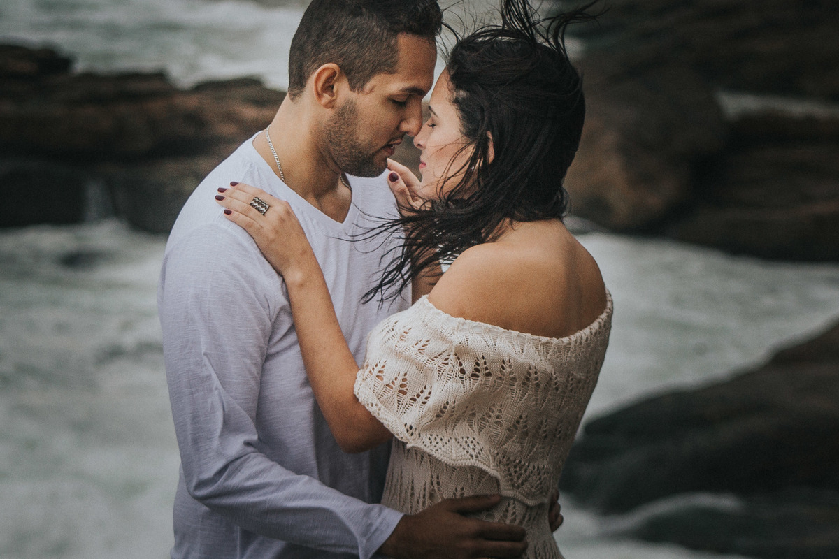 Os noivos quando nos contataram, queriam fazer um ensaio fotográfico para lá de diferente, e como tudo que é feito na cidade do Rio de Janeiro, envolve mar e sol, decidimos realizar o ensaio de uma forma diferente, que vai além da linha do oceano. Separamos o ensaio em dois dias, para que pudêssemos dedicar todos os momentos ao casal, afinal, não são horas contadas que irá contar uma verdadeira historia.